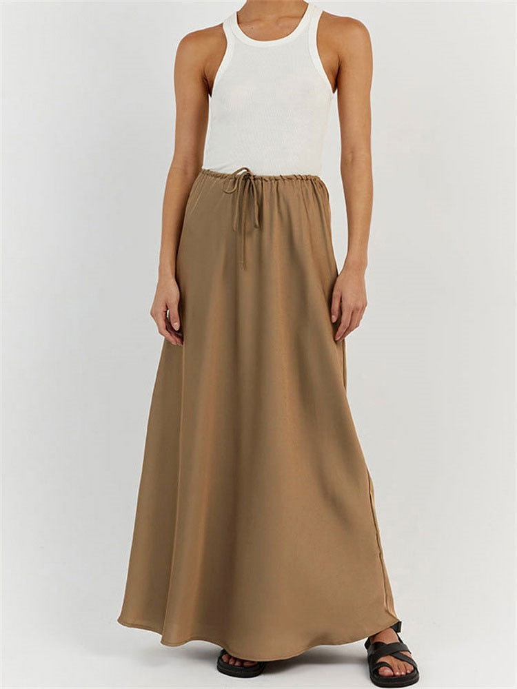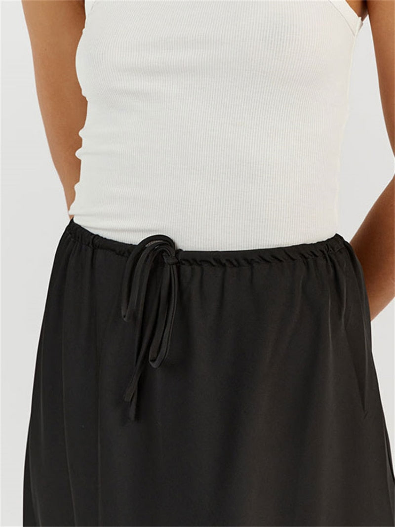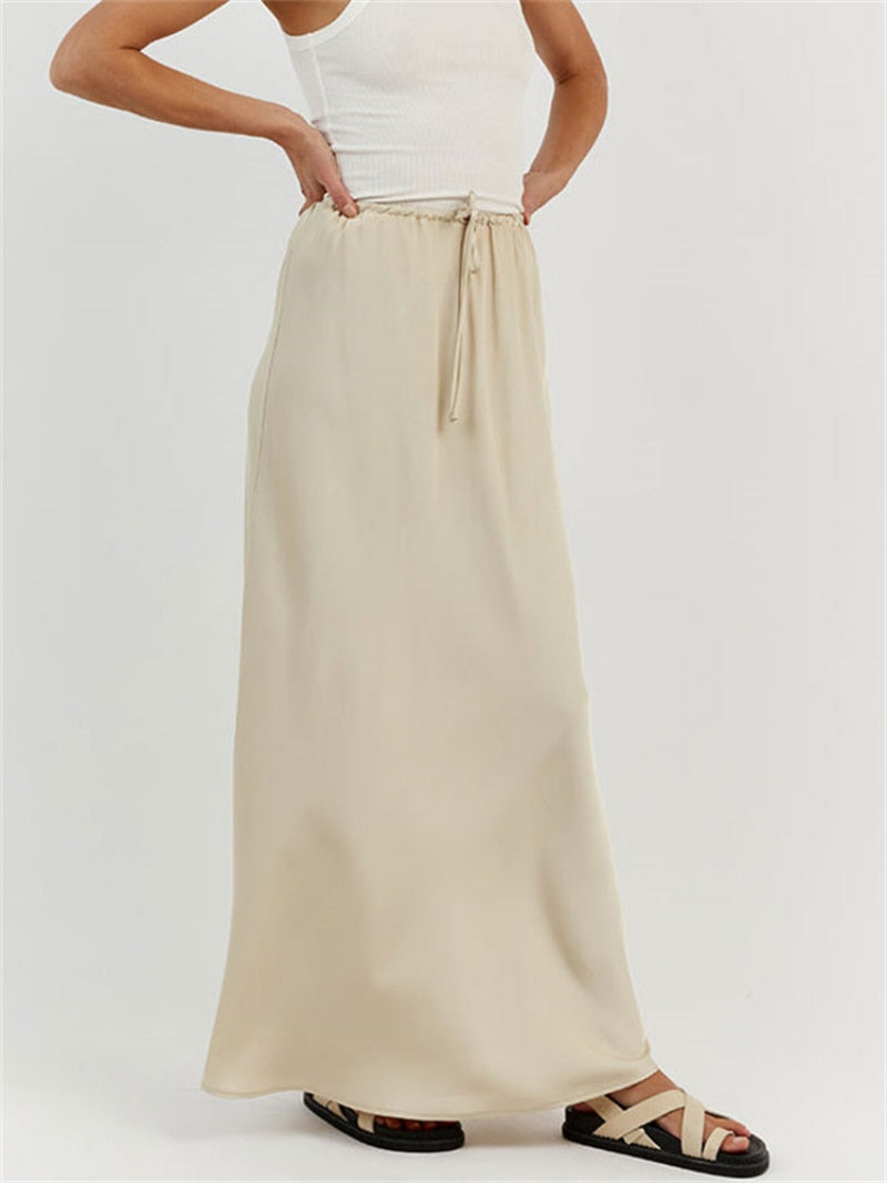 Introducing the MAYA SKIRT. Crafted from a blend of polyester and silk, its luxuriously lightweight fabric moves seamlessly with your body, while its high waist and slight stretch offer a comfortable, flattering fit. Exquisitely detailed with a lace-up design, this ankle-length skirt is a timeless masterpiece of casual elegance.